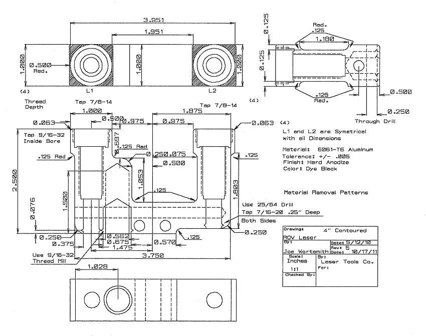 Both Manual and Computerized machining are used for best end results. Prototype parts and small runs are often created using our manual milling approach and 40 years of machining experience. Knowing the correct “Feed and Speed” is using knowledge gained from experience. This is applied to all parts machined at Laser Tools Machining.