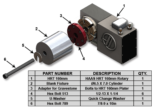 The GRAVESTONE™ work holding fixture is comparable to a horizontal milling center tombstone and fits any Haas HRT 160mm rotary platter. Increase productivity compared to conventional vertical milling center work holding methods. These fixtures are constructed of 7075-T6 aluminum and are available as a “DIY” template or a custom solution tailored to your needs.